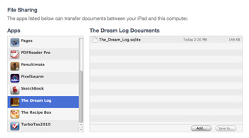 5. Scroll down, and at the bottom of the window, youll see the list of apps that support iTunes File Sharing. Select The Dream Log.