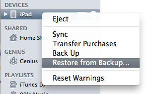 3. This also makes it simple to move your entries (and everything else) to a new iPad. Once you have the new device plugged in, all you need to do is choose Restore from Backup to have all our entries on the new machine. Isnt the future great?
